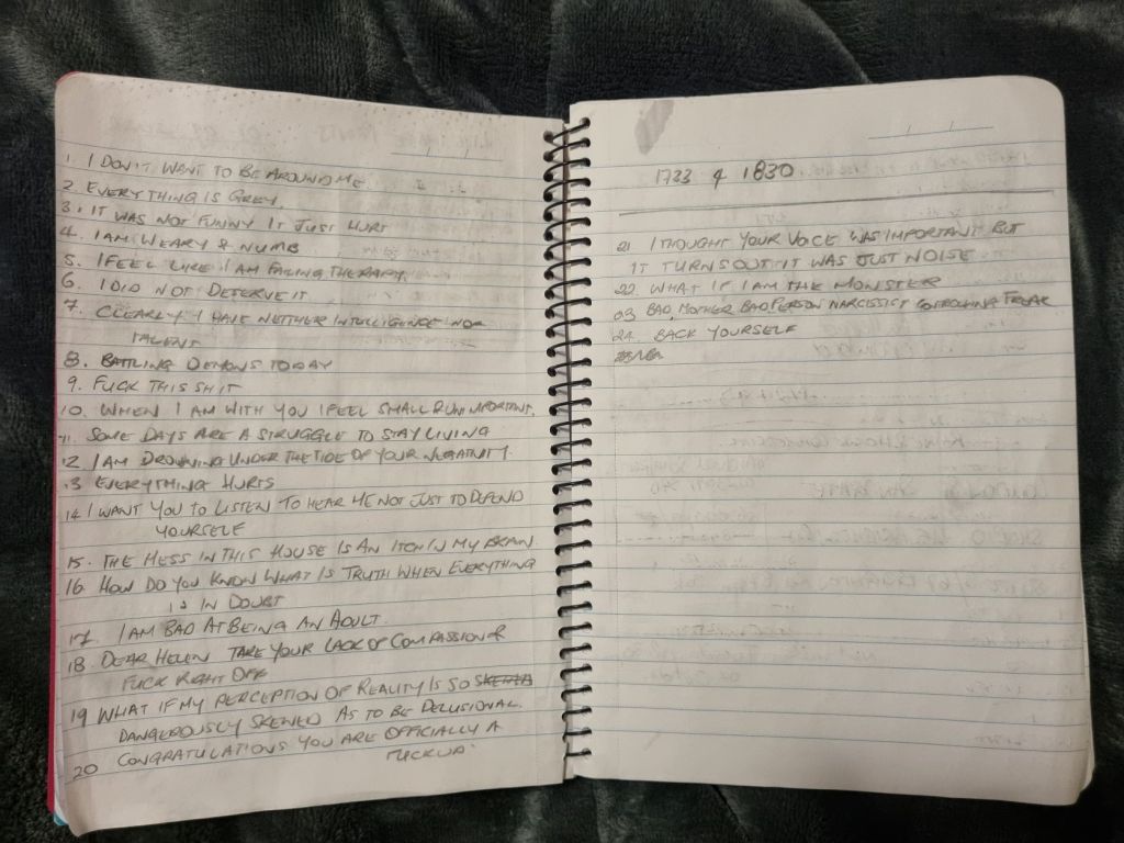 P.S. In case you were curious what each of the thought strings said, here are the pages of the notebook in which I wrote them. Some of them are confronting, some are triggering…so please be aware of that before you read through them.