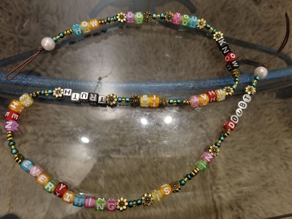 Those thoughts haunted me. Even when I had learned to argue against them and they had lost a lot of their power because I had learned to not accept them as truth. So one day, I started stringing them onto strings using beads.